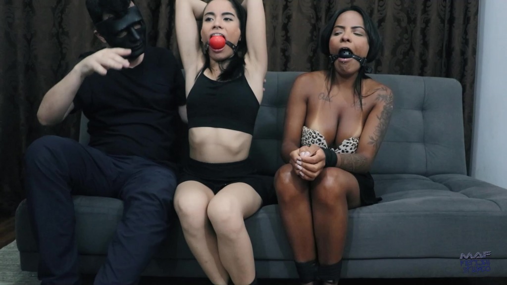 Kel and Luana were caught snooping around in my study.Once properly tied to the legs and wrists, I can observe them calmly, planning my actions from now on.They are straight women, that s for sure.So nothing like ordering more intimate contact between the two and watching the faces of contempt and disgust when they have to use their tongues on each other s bodies.I choose the armpits as my main target, after all the adrenaline of the capture and the fear caused them both to sweat and begin to emit a characteristic odor, which I couldn t help but notice.They are two beautiful women.One with big breasts, the other with small breasts and braces.They are different beauties that I will equate as submissives, ordering and leading one to lick and smell the other s armpits.Of course I will touch and explore their bodies with sexuality and pain, and I will extract the best that sluts can provide.I doubt they ll snoop around again!